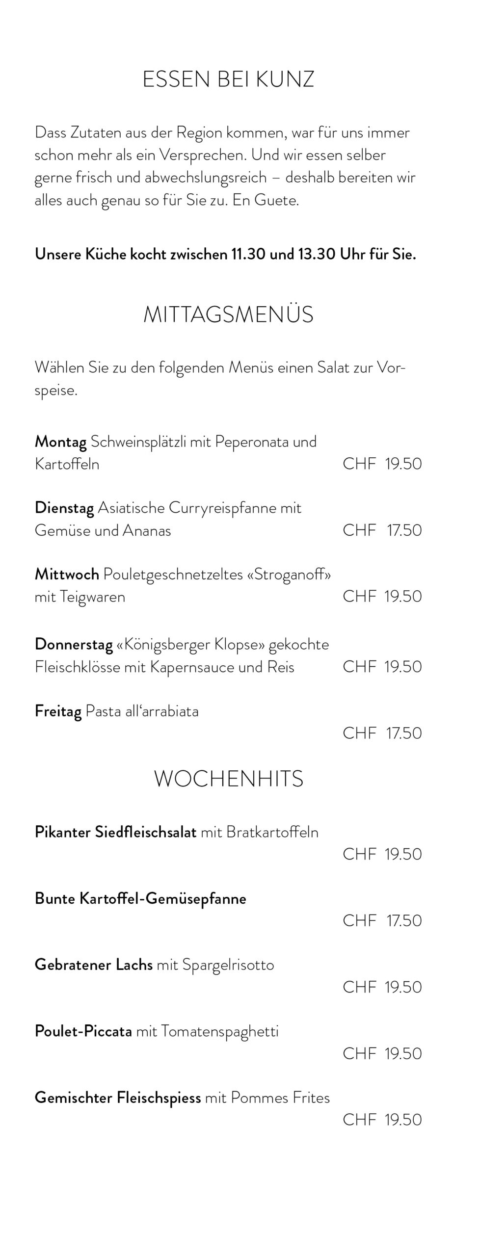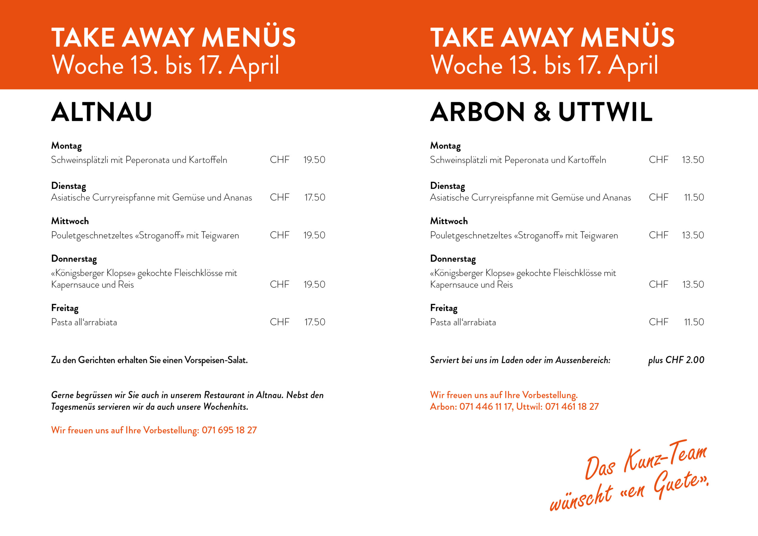 Take Away Menüs für Altnau, Uttwil und Arbon